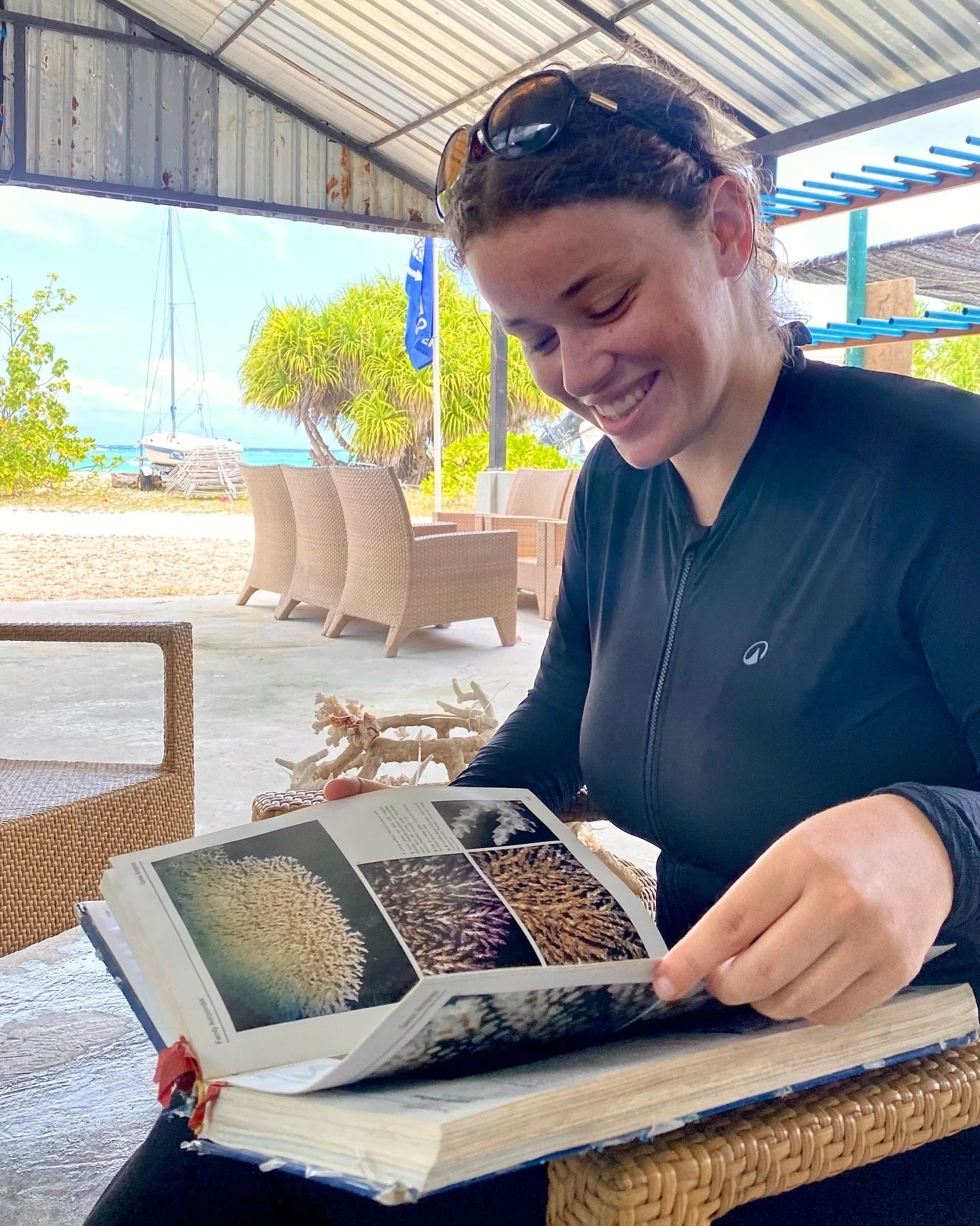 “The ocean is my happy place. Even after years of scuba diving, it still amazes and overwhelms me on every dive. However, it also deeply saddens me to see it suffering from human impact. At Naifaru I found inspiration for solutions while working on coral restoration at the beautiful house reef, monitoring fish, and removing trash.