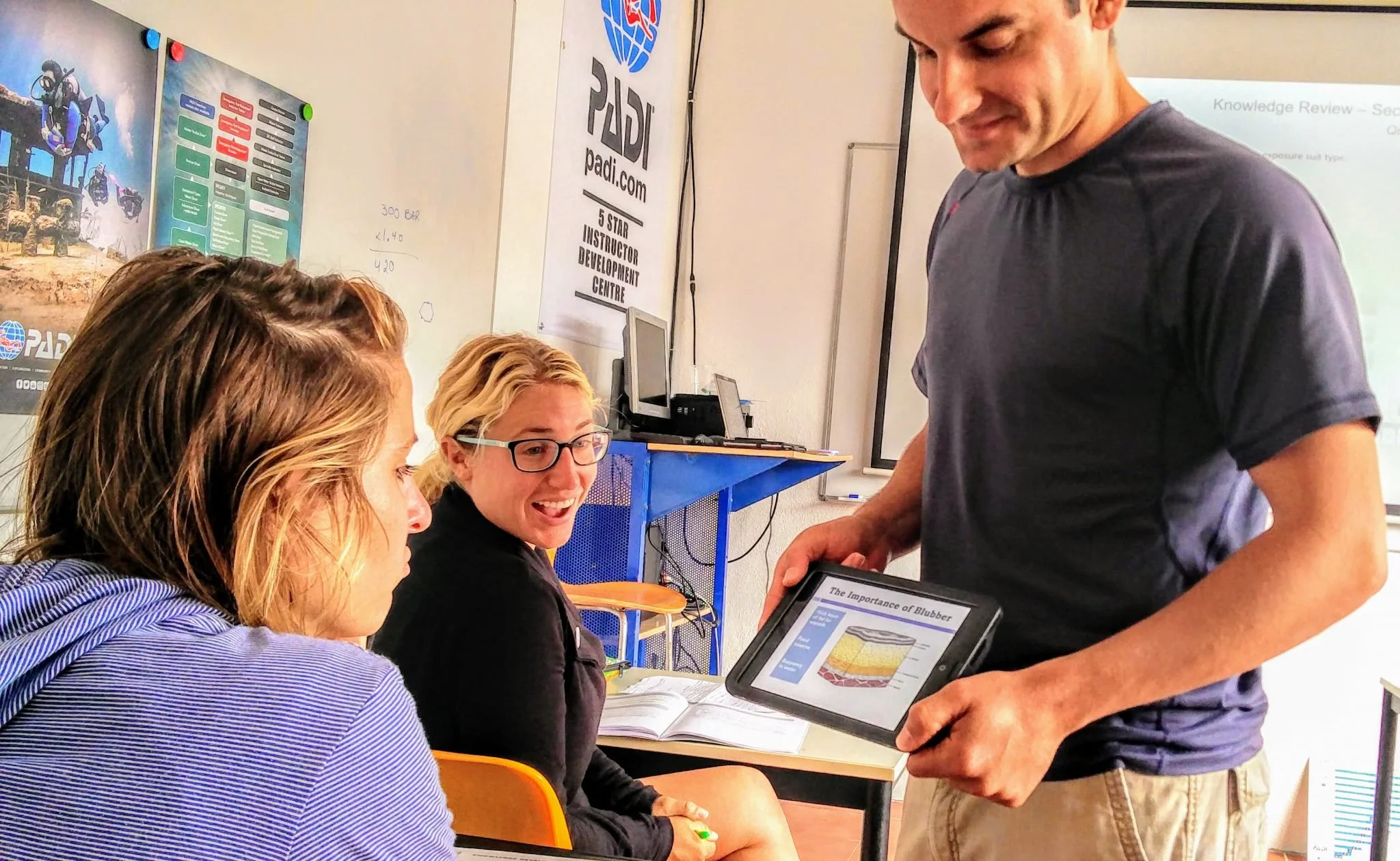 Nine knowledge review classroom sessions of the Divemaster online manual chapters (these cover the role of a Divemaster, physics and physiology of diving, diving equipment and the environment, decompression theory and RDP tables, Divemaster conducted programs and the business of diving).